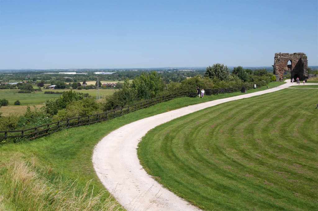 Tutbury Castle sits on a hill close to the Staffordshire/Derbyshire boundary which at that point is the River Dove. There are excellent views towards the river and hills of Derbyshire.