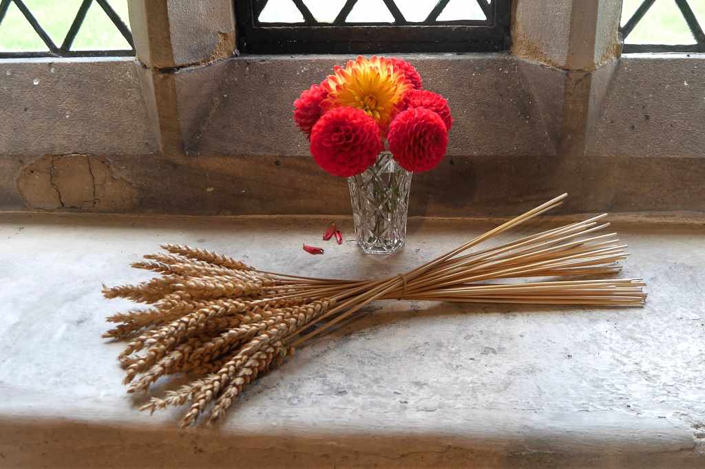 This photograph was taken five years ago almost to the day. It is inside St Edmund’s Church, Fenny Bentley, a small village near Ashbourne, Derbyshire. It was the day after their Harvest Festival and this simple window display was perfect for a quiet rural church, typical of so many English village churches.