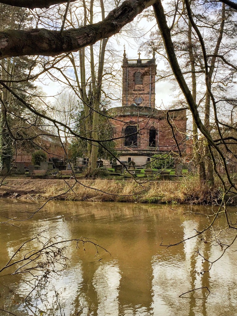 I have always liked this sculpture of St. Modwen, patron saint of Burton upon Trent. It is part of the Washlands Sculpture Trail on Andressey Island, an island formed where the river divides into two branches. It is by John Fortnum and was unveiled in 1995. Larger than life at some 14ft (4.2 metres) tall, official records simply describe it as ‘A statue of St Modwen without limbs’. Little is made of the fact that it is a wind sculpture whose head and shoulders turn to the prevailing wind and sounds are created as the wind passes through the steel strips forming the cloak. The statue is in a quieter part of the trail and washlands. I quite like this misty morning shot which gives the sculpture an ethereal quality. A lone figure patrolling the boundary or taking an early morning walk.