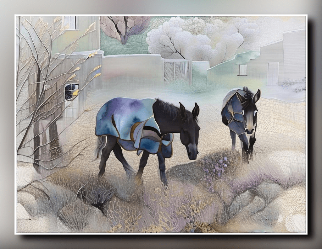 I know there are photography purists who see this kind of heavy editing as gimmicky or even deceptive, and they’re not entirely wrong. But by sticking to apps that still allowed a good degree of user control and creative input, I discovered that some genuinely interesting results were possible. We even liked a couple enough to have them printed, framed and hung at home, including this one of Betty and Dolly who live just round the corner from us and are seen here modelling their blue winter rugs!