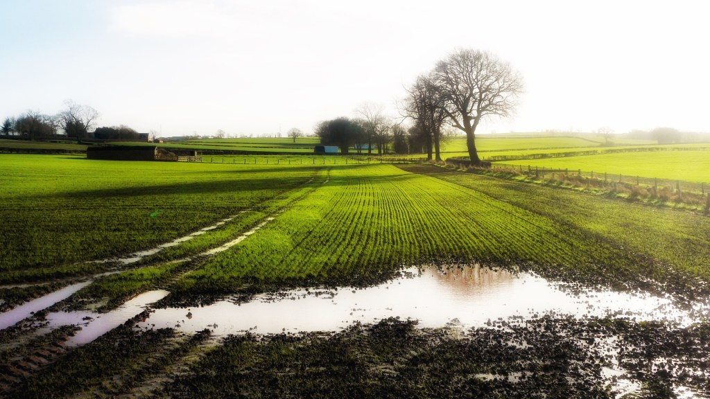 This photograph of nearby fields is my take on an old country saying ‘February fill the dyke, be it black or be it white; but if it be white, it’s the better to like.’ The saying perfectly describes early February when full dykes or ditches is a good sign that there is a plentiful and vital supply of water in the ground for the crops growing in the months ahead. The water can be from rain (black) or snow (white). Good for the crops, but not quite so good for walkers wishing to use footpaths. Sturdy, waterproof boots are certainly required.